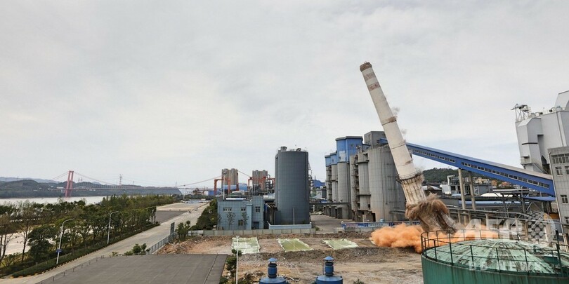 湖北省で火力発電所の爆破解体作業 長江の緑を保護活動の一環
