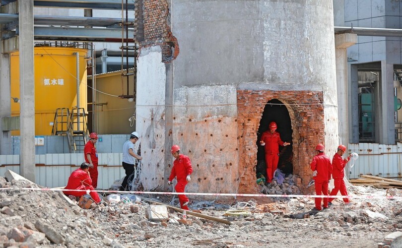 湖北省で火力発電所の爆破解体作業 長江の緑を保護活動の一環