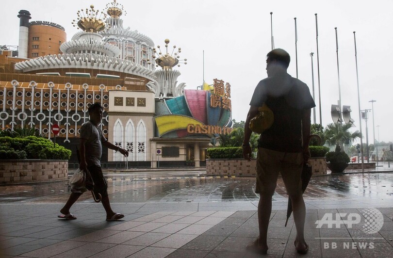 香港の対岸に位置し、昨年の台風13号(アジア名:ハト、Hato)で12人が死亡するなど大きな被害を受けたマカオ(Macau)では15日夜、同地にある42のカジノのすべてがしばらくの間休業するという初の措置が取られた。普段は観光客でにぎわうマカオだが16日朝は人通りも少なく、市内の至る所で企業や店舗の建物が板で覆われたり、土のうが積まれたりしていた。
