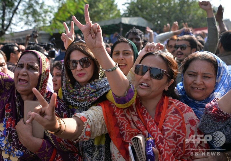首都イスラマバード近郊のラワルピンディ(Rawalpindi)にあるアディアラ(Adiala)刑務所の外には、釈放を待つ支持者数百人が集まった。現場のAFP記者は、両氏は支持者が投げるバラの花びらを浴びながらSUV(多目的スポーツ車)に乗ってその場を離れたとしている。