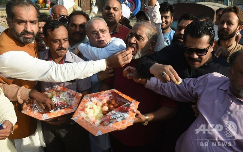 首都イスラマバード近郊のラワルピンディ(Rawalpindi)にあるアディアラ(Adiala)刑務所の外には、釈放を待つ支持者数百人が集まった。現場のAFP記者は、両氏は支持者が投げるバラの花びらを浴びながらSUV(多目的スポーツ車)に乗ってその場を離れたとしている。