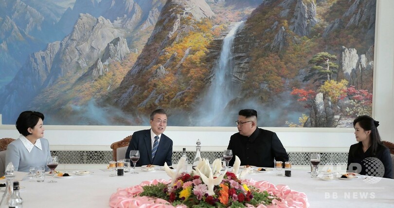 【9月20日 AFP】韓国の文在寅(ムン・ジェイン、Moon Jae-in)大統領と北朝鮮の金正恩(キム・ジョンウン、Kim Jong-Un)朝鮮労働党委員長は19日午後、平壌の老舗冷麺店「玉流館(オンリュグァン、Okryukwan)」で昼食会を開いた。両首脳は時に談笑しながら平壌名物の冷麺に舌鼓を打った。