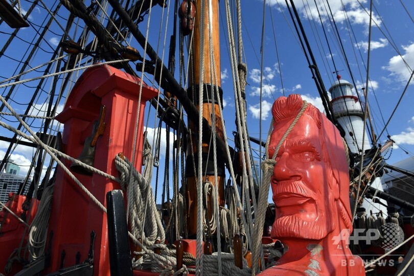 オーストラリア・シドニーのダーリングハーバー(Darling Harbour)には現在、豪近代史の重要な記念碑として、エンデバー号を復元した帆船が係留されている。(c)AFP