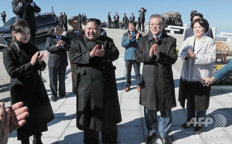 【9月20日 AFP】(更新、写真追加)韓国の文在寅(ムン・ジェイン、Moon Jae-in)大統領と北朝鮮の金正恩(キム・ジョンウン、Kim Jong-Un)朝鮮労働党委員長は20日、北朝鮮北部の対中国境にある朝鮮民族の聖地、白頭山(ペクトゥサン、Mount Paektu)を訪れ、共に登頂した。