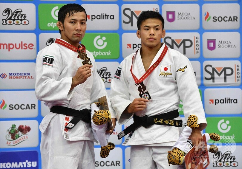 また男子60キロ級では、髙藤直寿(Naohisa Takato)が連覇を飾り、永山竜樹(Ryuju Nagayama)が銅メダルを手にしている。(c)AFP