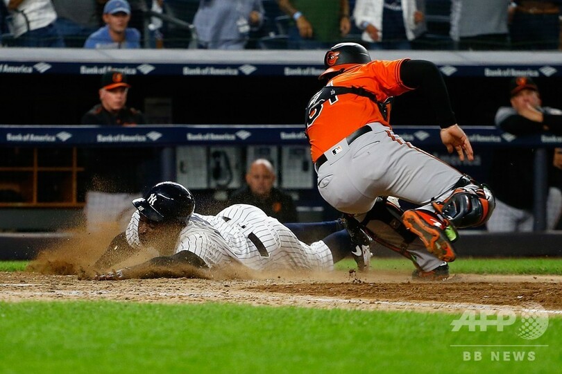 【9月23日 AFP】米大リーグ(MLB)のニューヨーク・ヤンキース(New York Yankees)は22日、ボルティモア・オリオールズ(Baltimore Orioles)から3-2でサヨナラ勝ちを収め、2年連続となるア・リーグのワイルドカードによるプレーオフ進出を決めた。
