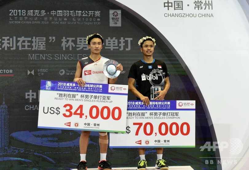 【9月24日 AFP】バドミントン、中国オープン(VICTOR China Open 2018)は23日、各種目決勝が行われ、大会第3シードの桃田賢斗(Kento Momota)は21-23、19-21で世界ランキング13位のアンソニー・ギンチン(Anthony Sinisuka Ginting、インドネシア)に敗れ、男子シングルス優勝を逃した。