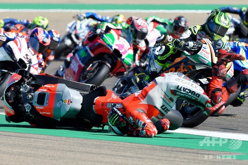 一方、ポールポジションからスタートしたドゥカティ(Ducati Team)のホルヘ・ロレンソ(Jorge Lorenzo、スペイン)は1周目のターン1でクラッシュし、爪先を脱臼する悲惨な一日を送った。