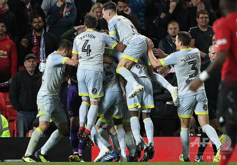 【9月26日 AFP】イングランド・フットボールリーグカップ(England Football League Cup 2018-19)は25日、3回戦が行われ、マンチェスター・ユナイテッド(Manchester United)が退場者を出した末、PK戦で2部のダービー・カウンティ(Derby County)に敗れる波乱があった。マンチェスター・シティ(Manchester City)は快勝で16強入りを果たした。