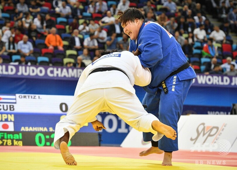 【9月27日 AFPBB News】世界柔道選手権(World Judo Championships 2018)は26日、アゼルバイジャンのバクーで7日目が行われ、女子78キロ超級で朝比奈沙羅(Sarah Asahina)が金メダルを獲得した。