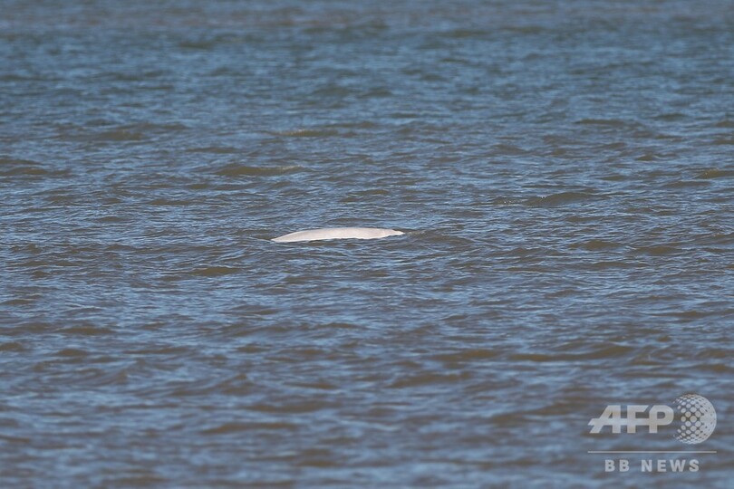 シロイルカが最初に目撃されたのは25日。翌日も同じエリアの川面に姿を見せ、AFPのカメラマンも写真に収めた。