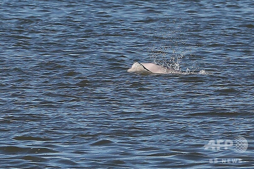 シロイルカが最初に目撃されたのは25日。翌日も同じエリアの川面に姿を見せ、AFPのカメラマンも写真に収めた。