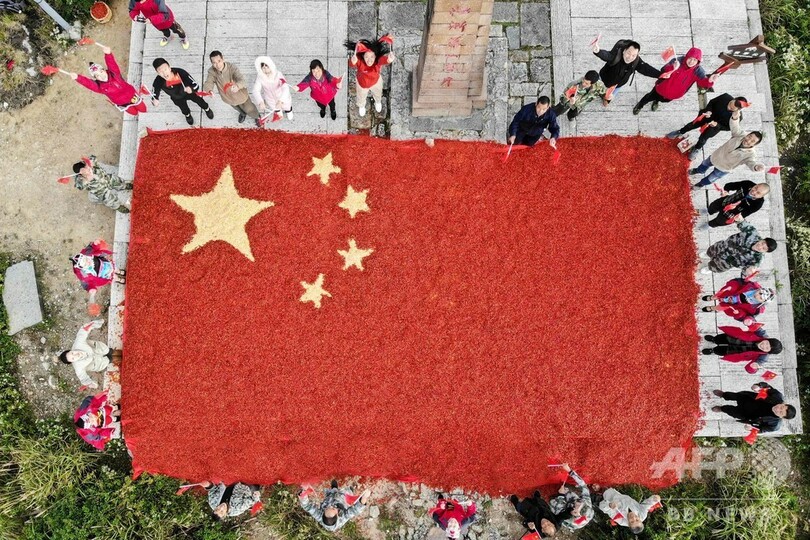 ニュース ライフ こぼれ話 国慶節控え巨大な国旗登場、その正体は…?中国 2018年9月27日 14:07 発信地:麗水市/中国 [ 中国 中国・台湾 ] このニュースをシェア ‹ › ❮ 1/3 ❯ 中国浙江省麗水市の竜泉山で、唐辛子とトウモロコシで作った巨大な中国の国旗の周りでポーズを取る農民たち(2018年9月26日撮影)。(c)AFP 画像作成中 ! 【9月27日 AFP】中国東部浙江省(Zhejiang)麗水市(Lishui)の竜泉(Longquan)山に26日、巨大な中国国旗が出現した。10月1日の建国記念日「国慶節」を祝うため、農民たちが収穫したての生の唐辛子とトウモロコシで作った。(c)AFP ライフ 一覧へ> メディア・報道関係・法人の方向け 写真・動画 購入のお問合せ>