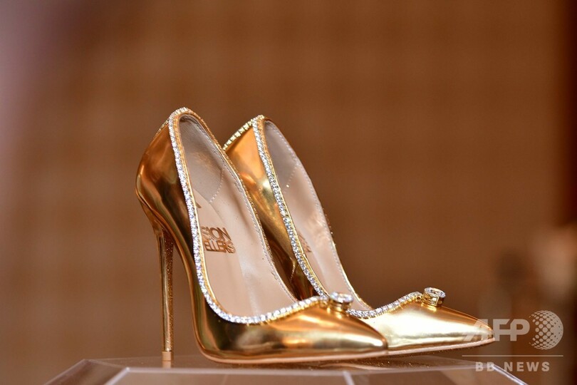 【9月28日 AFP】アラブ首長国連邦(UAE)のドバイにある超高級ホテル「ブルジュ・アル・アラブ(Burj Al Arab)」で26日、ダイアモンド236個があしらわれた金色の本革ハイヒールが公開された。値段は一足1700万ドル(約19億円)で、世界で最も高価な靴だという。