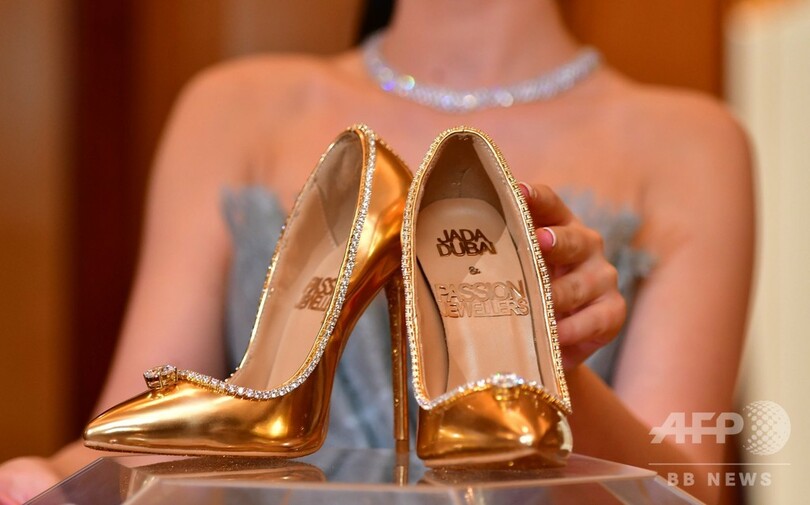 【9月28日 AFP】アラブ首長国連邦(UAE)のドバイにある超高級ホテル「ブルジュ・アル・アラブ(Burj Al Arab)」で26日、ダイアモンド236個があしらわれた金色の本革ハイヒールが公開された。値段は一足1700万ドル(約19億円)で、世界で最も高価な靴だという。