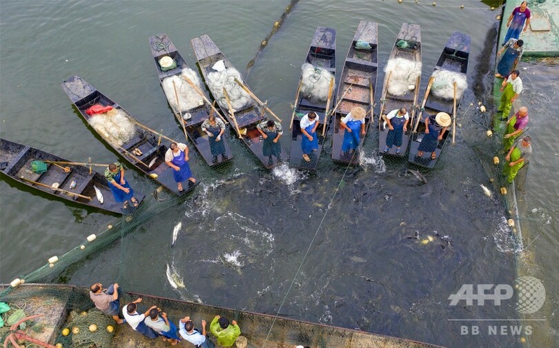 仙女湖地域の漁獲量は毎年約6000トン以上で、50種類以上の魚が広東(Guangdong)、湖南(Hunan)、浙江(Zhejiang)省など国内市場に販売される。(c)CNS/JCM/AFPBB News