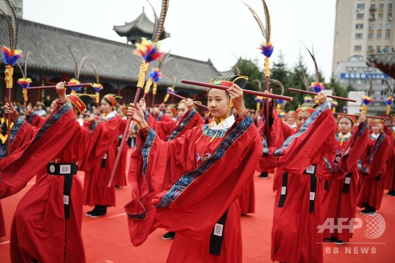 【10月7日 CNS】中国・吉林省(Jilin)長春市(Changchun)の文廟(Wen Miao)で9月28日、孔子生誕2569年記念を祝う式典が開かれ、「初献礼」「献祝」「行亜献礼」などの儀式が古式ゆかしくとり行われた。(c)CNS/JCM/AFPBB News