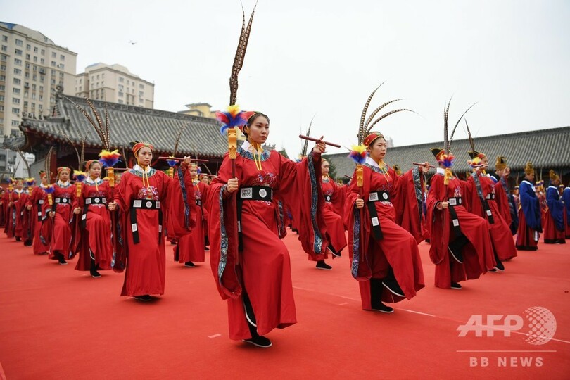 【10月7日 CNS】中国・吉林省(Jilin)長春市(Changchun)の文廟(Wen Miao)で9月28日、孔子生誕2569年記念を祝う式典が開かれ、「初献礼」「献祝」「行亜献礼」などの儀式が古式ゆかしくとり行われた。(c)CNS/JCM/AFPBB News
