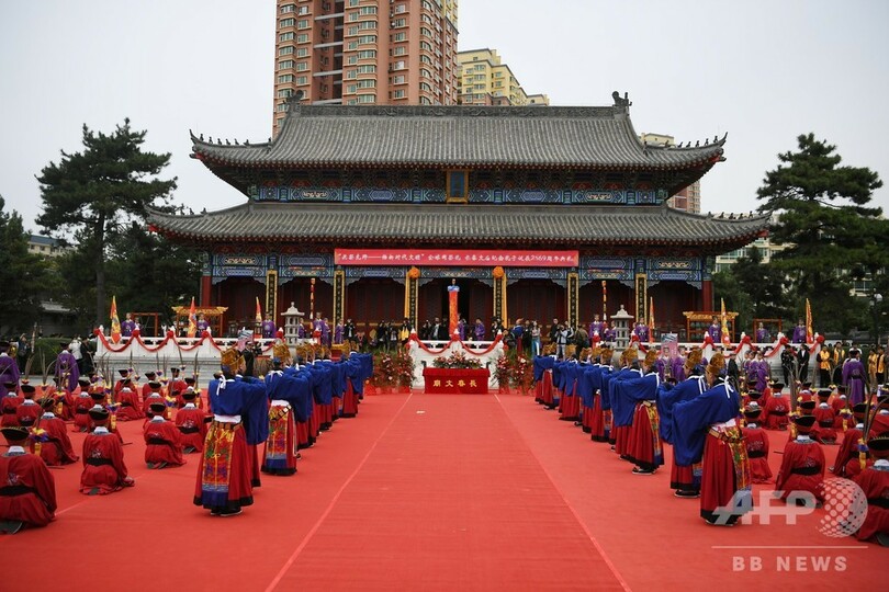 【10月7日 CNS】中国・吉林省(Jilin)長春市(Changchun)の文廟(Wen Miao)で9月28日、孔子生誕2569年記念を祝う式典が開かれ、「初献礼」「献祝」「行亜献礼」などの儀式が古式ゆかしくとり行われた。(c)CNS/JCM/AFPBB News