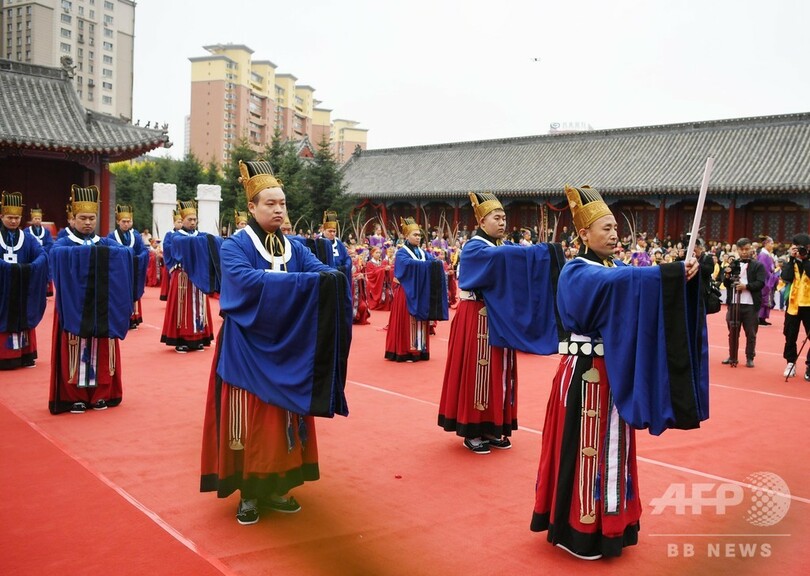 【10月7日 CNS】中国・吉林省(Jilin)長春市(Changchun)の文廟(Wen Miao)で9月28日、孔子生誕2569年記念を祝う式典が開かれ、「初献礼」「献祝」「行亜献礼」などの儀式が古式ゆかしくとり行われた。(c)CNS/JCM/AFPBB News