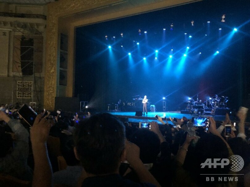 40年以上にわたる音楽人生を歩んできた谷村さんは、音楽をかけ橋に中日両国の国民に友好を伝え続けており、今回の公演も優しい歌声で北京の夜を照らしていた。(c)東方新報/AFPBB News