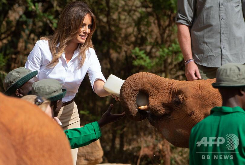 【10月5日 AFP】アフリカ4か国を歴訪中のドナルド・トランプ(Donald Trump)米大統領の妻メラニア(Melania Trump)夫人は5日、3か国目となるケニアを訪問し、サファリでゾウの赤ちゃんと触れ合うなどした。