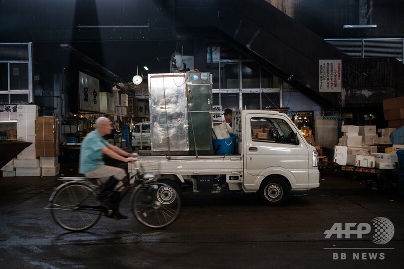 【10月7日 AFP】6日に営業を終えた東京都の築地市場は7日、豊洲市場への引っ越しが本格化し、築地名物の小型運搬車「ターレ」などが公道を走って豊洲市場に移動した。豊洲市場は今月11日に営業を開始する。(c)AFP