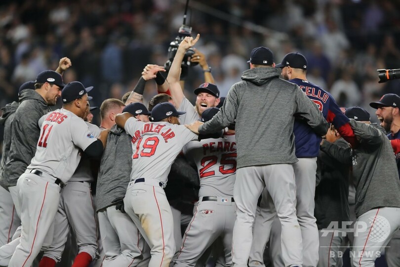 【10月10日 AFP】18MLBは9日、プレーオフのア・リーグ地区シリーズ(5回戦制)が行われ、ボストン・レッドソックス(Boston Red Sox)は4-3でニューヨーク・ヤンキース(New York Yankees)に競り勝ち、リーグ優勝決定シリーズへ駒を進めた。レッドソックスはクリスチャン・バスケス(Christian Vazquez)の本塁打などで先行すると、9回のピンチをしのぎ切って因縁のライバルとの対決を制した。