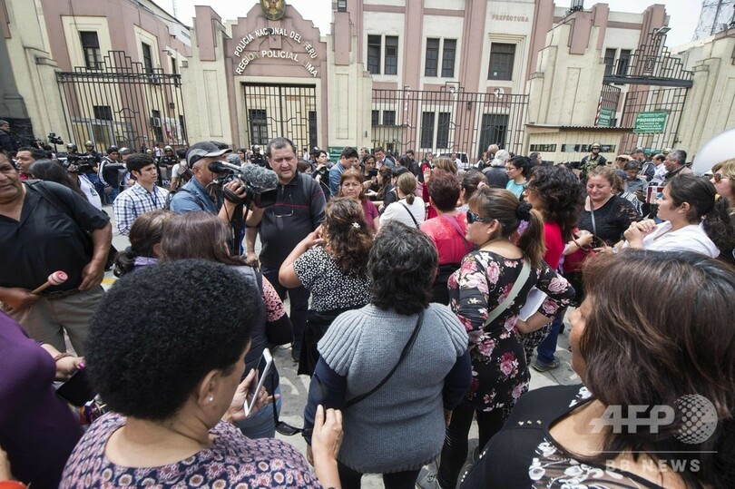 当局の捜査は、ケイコ氏が出馬した2011年の大統領選で同氏が党首を務める同国の最大野党「フエルサ・ポプラル(Fuerza Popular)」に対し行われた献金に関するもので、ケイコ氏の他に19人が身柄を拘束された。(c)AFP