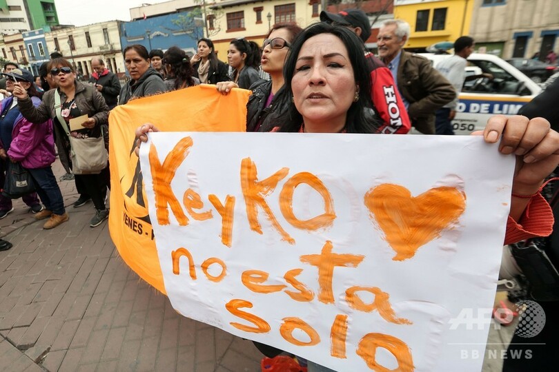 当局の捜査は、ケイコ氏が出馬した2011年の大統領選で同氏が党首を務める同国の最大野党「フエルサ・ポプラル(Fuerza Popular)」に対し行われた献金に関するもので、ケイコ氏の他に19人が身柄を拘束された。(c)AFP