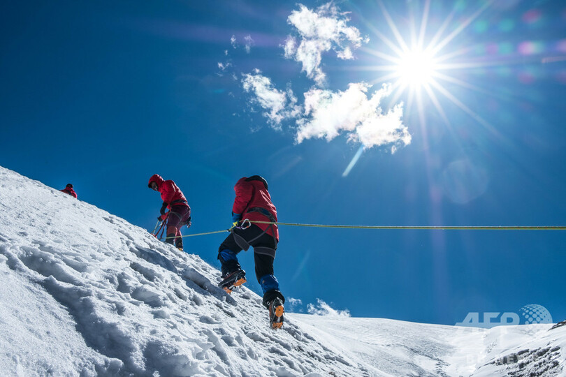 香港や中国各地から来た登山愛好家67人が、海抜6010メートルの洛堆峰に挑み、6日までに62人が登頂に成功した。(c)CNS/JCM/AFPBB News