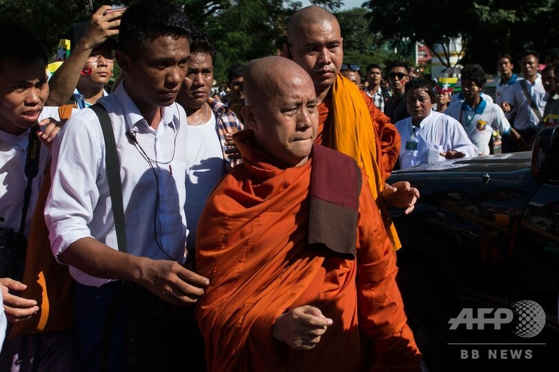 ミャンマーの仏教徒の国家主義運動の顔として知られるウィラトゥ師は、高僧会議から「宗教に対するヘイトスピーチを繰り返し、地域社会の対立を引き起こしている」として昨年から今年3月まで公共の場の説法を禁止されていた他、フェイスブック(Facebook)からも締め出しを受けていた。