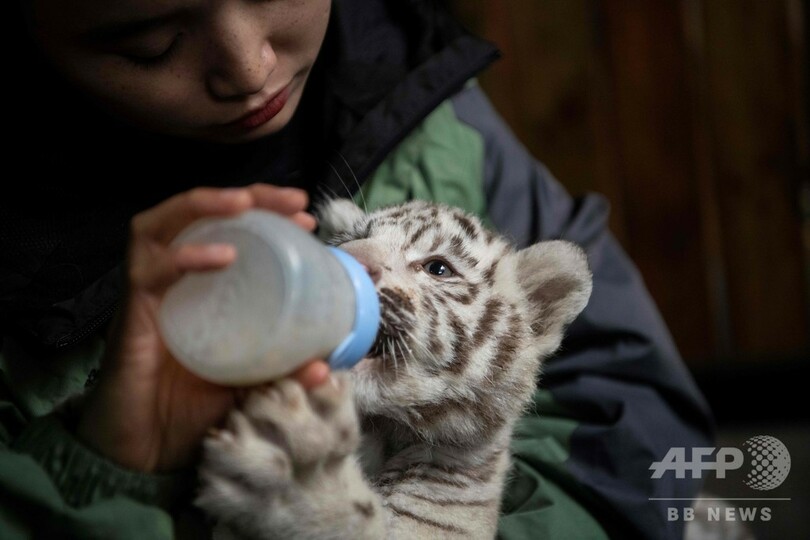 三つ子のホワイトタイガーの赤ちゃん、動物園で公開 中国・昆明