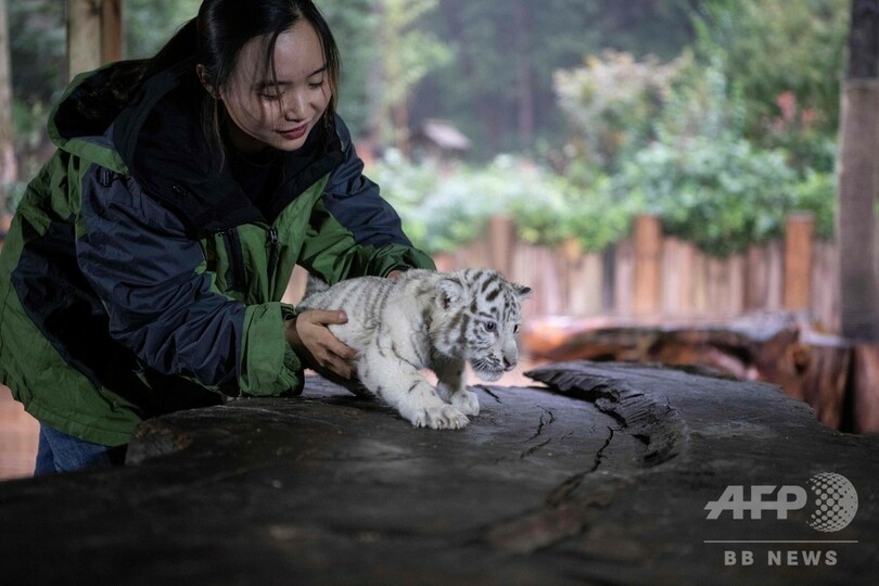 三つ子のホワイトタイガーの赤ちゃん、動物園で公開 中国・昆明