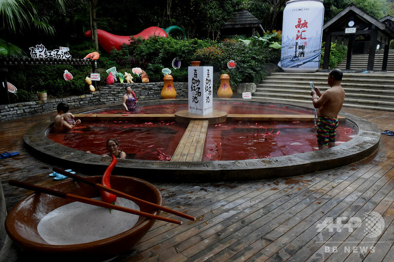 地獄の釜? 重慶の「火鍋温泉」で赤いスープに漬かる