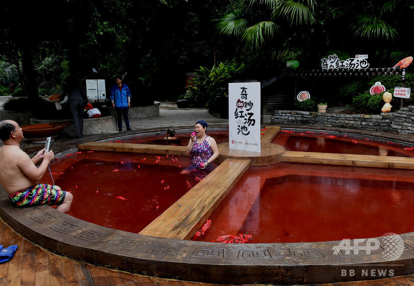 地獄の釜? 重慶の「火鍋温泉」で赤いスープに漬かる
