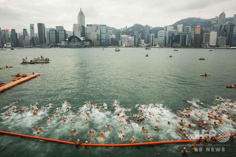 【10月22日 AFP】中国・香港で21日、毎年恒例のビクトリアハーバー(Victoria Harbour)横断水泳大会が開催された。世界有数の混雑海域で、香港を代表するスポットともなっているビクトリアハーバーの横断に、大勢の人が挑戦した。(c)AFP