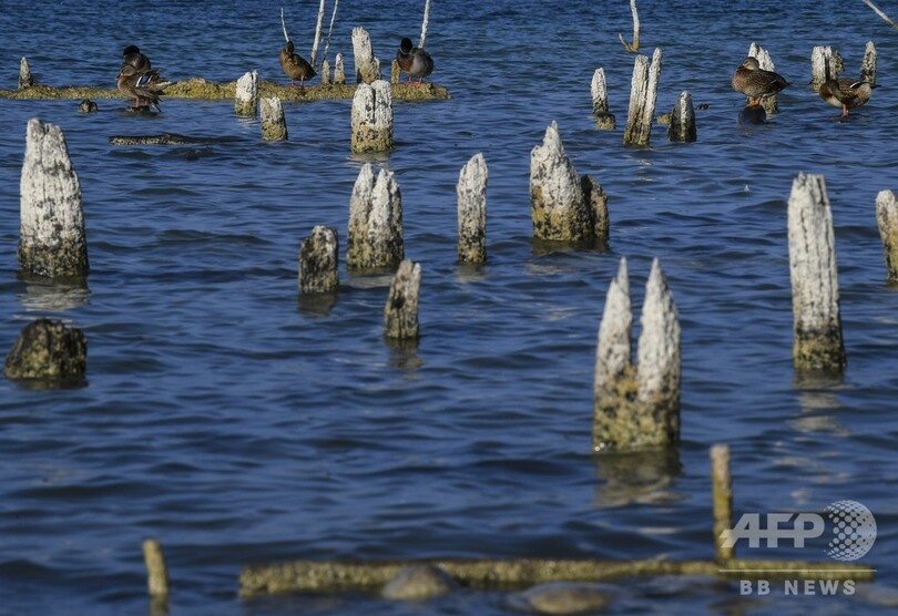【10月23日 AFP】フランス西部パラドル(Paladru)にあるパラドル湖(Paladru lake)では、この夏の猛暑によって普段は水中に沈んでいる新石器時代の遺跡が姿を現している。22日には、湖畔周辺を多くの人が訪れた。(c)AFP
