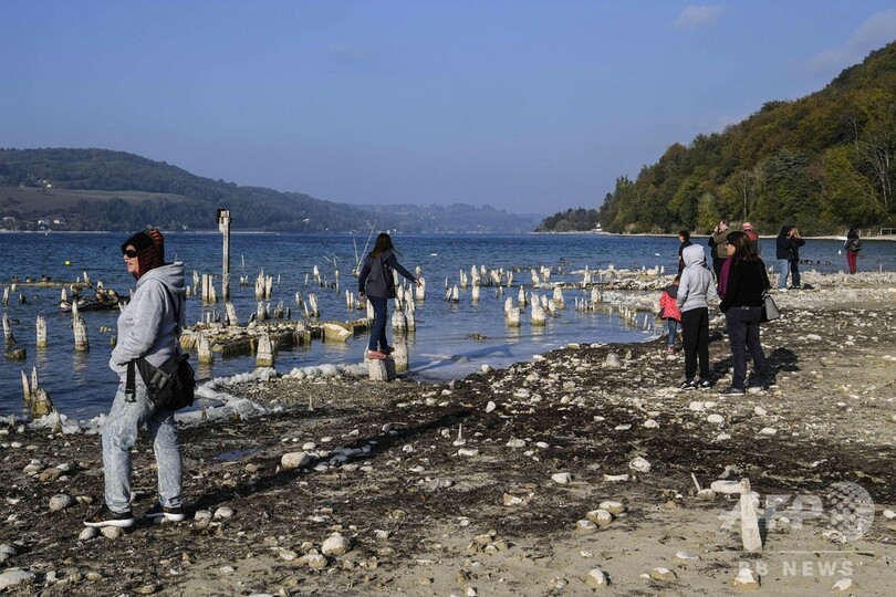 【10月23日 AFP】フランス西部パラドル(Paladru)にあるパラドル湖(Paladru lake)では、この夏の猛暑によって普段は水中に沈んでいる新石器時代の遺跡が姿を現している。22日には、湖畔周辺を多くの人が訪れた。(c)AFP