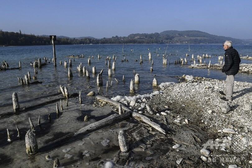 【10月23日 AFP】フランス西部パラドル(Paladru)にあるパラドル湖(Paladru lake)では、この夏の猛暑によって普段は水中に沈んでいる新石器時代の遺跡が姿を現している。22日には、湖畔周辺を多くの人が訪れた。(c)AFP