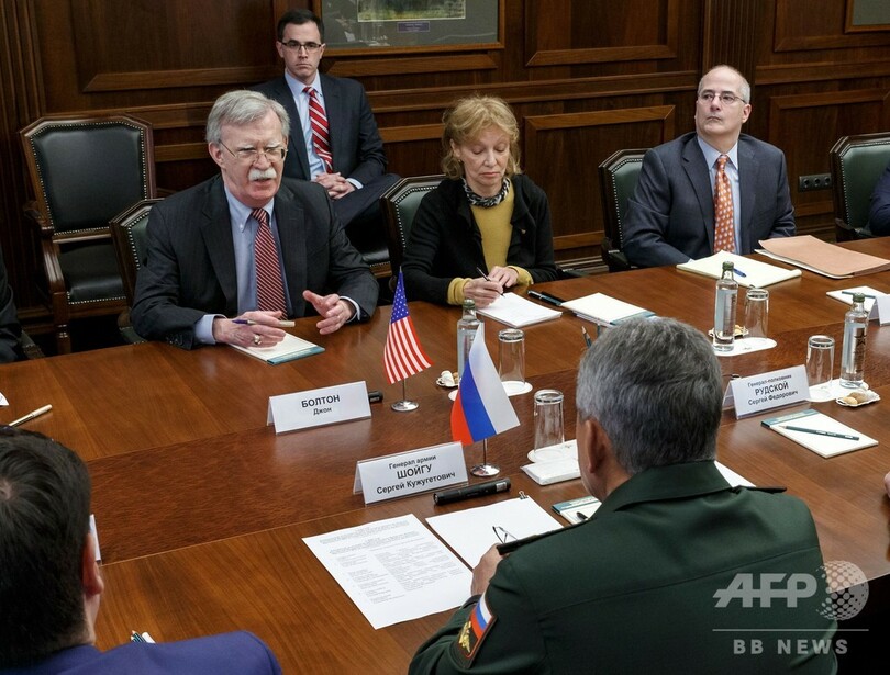 【10月23日 AFP】ドナルド・トランプ(Donald Trump)米大統領が中距離核戦力(INF)全廃条約から離脱する方針を表明したことに関連し、ロシアを訪問中のジョン・ボルトン(John Bolton)米大統領補佐官(国家安全保障問題担当)は23日、ロシアのセルゲイ・ショイグ(Sergei Shoigu)国防相と会談した。
