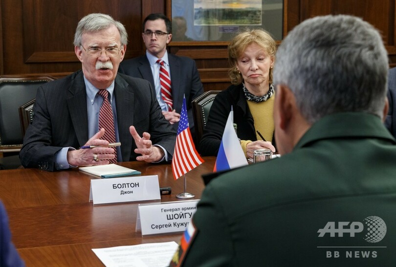 【10月23日 AFP】ドナルド・トランプ(Donald Trump)米大統領が中距離核戦力(INF)全廃条約から離脱する方針を表明したことに関連し、ロシアを訪問中のジョン・ボルトン(John Bolton)米大統領補佐官(国家安全保障問題担当)は23日、ロシアのセルゲイ・ショイグ(Sergei Shoigu)国防相と会談した。