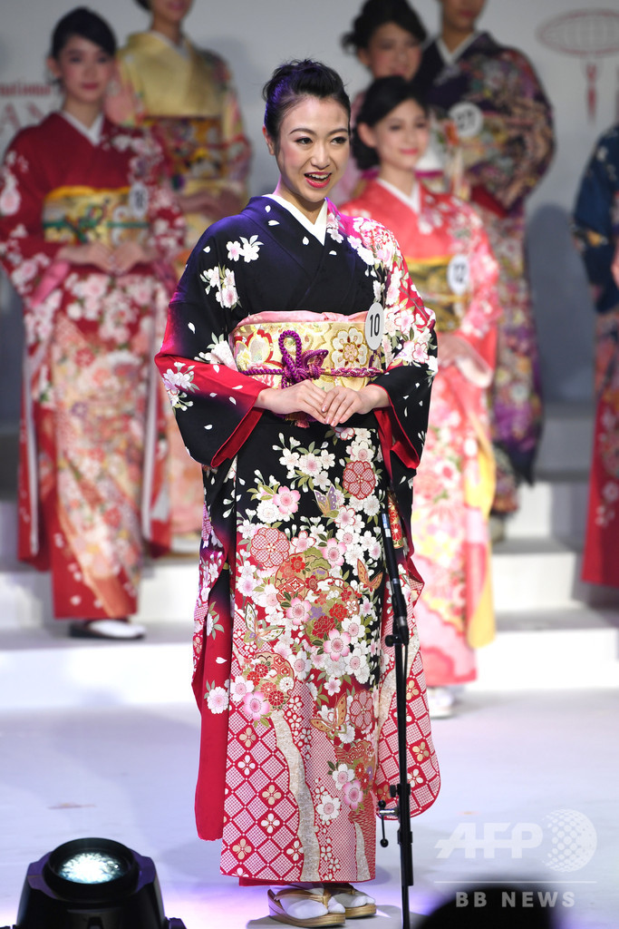 日本代表に輝いた岡田さんは、俳優の故岡田真澄(Masumi Okada)さんの娘。周囲に感謝を忘れずマナーに厳しかった父から「エレガンス」を教わったといい、「7歳のときに亡くなった父に、ステージで会えたと思っています」と語った。今年の世界大会は11月9日に都内で行われる。岡田さんは来年秋の世界大会に出場する予定。(c)AFPBB News