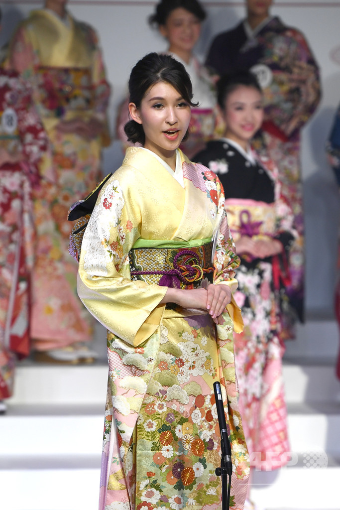 日本代表に輝いた岡田さんは、俳優の故岡田真澄(Masumi Okada)さんの娘。周囲に感謝を忘れずマナーに厳しかった父から「エレガンス」を教わったといい、「7歳のときに亡くなった父に、ステージで会えたと思っています」と語った。今年の世界大会は11月9日に都内で行われる。岡田さんは来年秋の世界大会に出場する予定。(c)AFPBB News