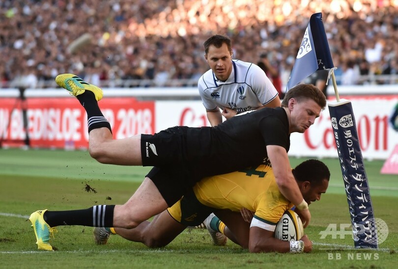 【10月28日 AFP】ラグビーのニュージーランド代表とオーストラリア代表の定期戦シリーズ「ブレディスローカップ(Bledisloe Cup)」が27日、横浜国際総合競技場(International Stadium Yokohama)で行われ、オールブラックス(All Blacks、ニュージーランド代表の愛称)は37-20で宿敵ワラビーズ(Wallabies、オーストラリア代表の愛称)に勝利し、シリーズ3戦全勝を達成した。