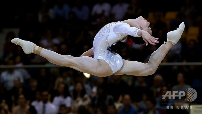 21歳という年齢にして通算11個目の世界タイトルを獲得したバイルスは、今大会でさらに2つの金メダルを手にすると、世界体操における通算タイトル数は13となり、男女通して史上最多の記録となる。(c)AFP