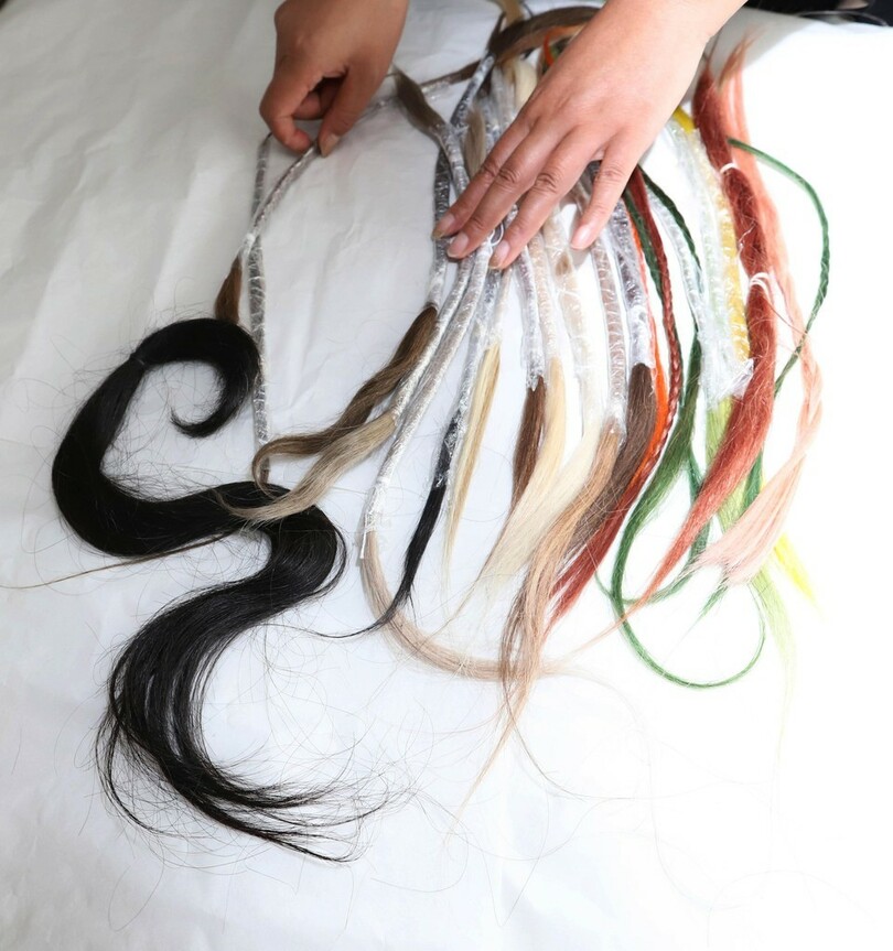 髪繍は別称を「墨繍(Mo Xiu)」とも言い、人間の頭髪を糸として用い、鉤針を筆のように使い、「接(jie、繋ぐ)」「切(qie、切る)」「纏(chan、絡める)」「滚(gun、巻く)」など数十種の針法と100余の工程を経て、黒、白、灰、黄などの頭髪の自然な色彩を用いて作られる精緻な芸術だ。