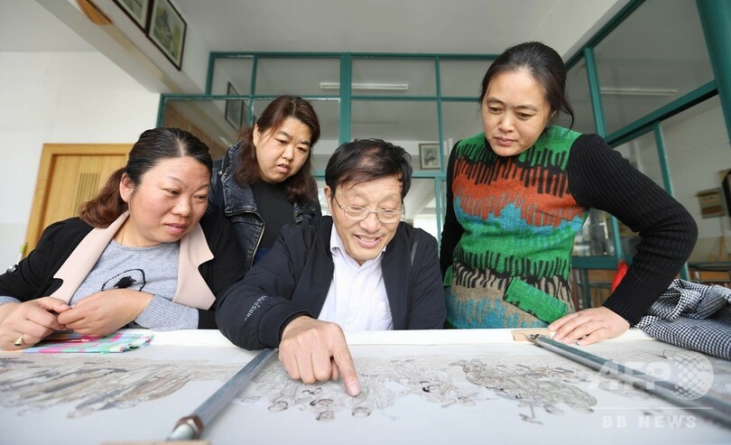 近年、江蘇省東台市はこの伝統芸術をさらに発展させ、髪繍の設計から配色、刺繍、装幀に至る産業チェーンを作り上げた。刺繍技術についても開発と創造を続け、「墨繍(単色)」から「彩繍(彩色)」、片面刺繍から両面刺繍へと発展させ、現在さらに新しい「両面異色刺繍」を創り出した。作品テーマは広範にわたり、精密な製作技術により、100を超える国と地域に輸出されている。(c)CNS/JCM/AFPBB News