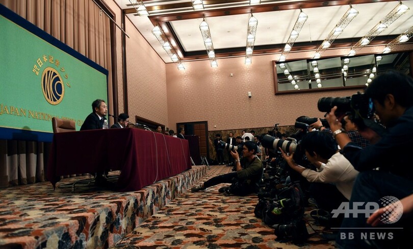 【11月2日 AFP】2015年にシリアで武装勢力に拘束され、先月解放されたフリージャーナリストの安田純平(Jumpei Yasuda)さんが2日、東京の日本記者クラブで会見を開いた。(c)AFP
