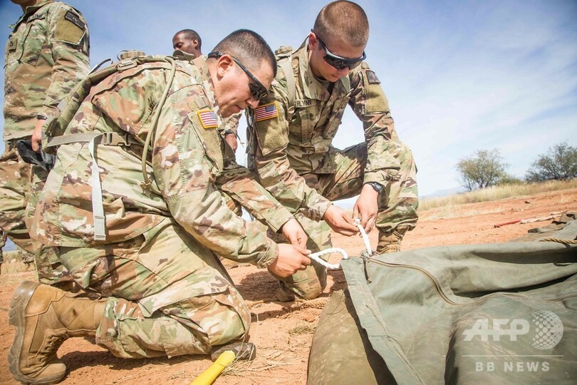 トランプ大統領は対メキシコ国境に最大で1万5000人の兵士派遣もあり得ると述べているが、米兵は国内での法執行活動が規制されており、活動は後方支援に限定される見通し。 (c)AFP